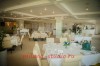 Украшение зала на свадьбу в ресторане Беллини было выполнено в бирюзовой и белой цветовой гамме. Стол молодоженов драпирован органзой насыщенного бирюзового цвета. Его ниспадающие фалды подчеркивала подсветка. Инициалы молодых супругов располагались в затейливом сердечке бирюзового цвета. Флористические композиции на столе молодоженов и гостей составлены из бирюзовых орхидей, белых роз и зелени. Ничего лишнего, стильно и изящно.