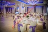 Оформление свадебного зала в Репаблик Холл было выполнено в бело-сиреневой цветовой гамме. Стол молодых драпирован сиреневой вуалью. Инициалы в кружевной рамке сиреневого цвета. Благодаря заливной подсветке, президиум освещался на протяжении вечера роскошным свечением. На белоснежных чехлах стульев красовались сиреневые банты. Флористические композиции на столах гостей и молодоженов состояли из белых роз, зелени, сиреневой орхидеи и эустомы. Номера столов в разных рамках – золотой, зеленой, сиреневой. Красота интерьера свадебного зала ресторана Репаблик Холл была подчеркнута оформлением, выполненным нашими дизайнерами.