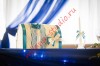 Оформление свадебного зала ресторана Рябина Бар было выполнено в синей и белой цветовой гамме. На белом фоне за столом молодоженов располагались инициалы синего цвета в резной рамке. На белой скатерти- драпировка из синей вуали и подсветка. Шампанское и семейный очаг оформлены атласными лентами, также как и сундучок для денег. Флористические композиции составлены из белых орхидей, кремовых роз, зелени. Украшение свадебного зала ресторана Рябина Бар подчеркнуло красоту его интерьера.